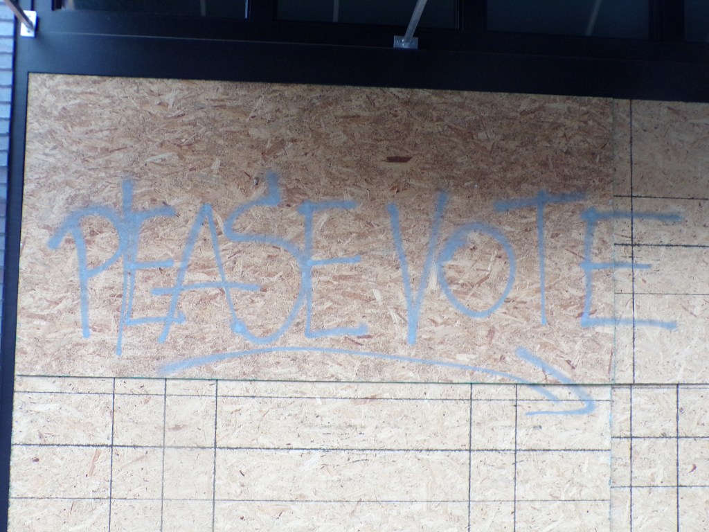 I found a corner to write “Please Vote” as big as I could and returned the can to the lady who was unaware I usually don’t bomb with 5 dollar Montana paint.